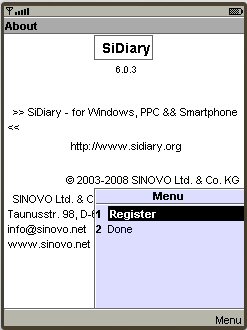 If you have purchased a SiDiary USB stick, you can find the transaction number by starting SiDiary on the stick and then switch into the menu 'Help -> Register'.