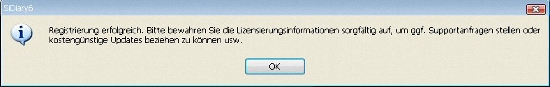 Sie erhalten dann eine solche Erfolgsmeldung; damit ist die Registrierung auf dem PC erledigt:
