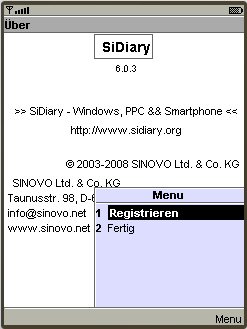 Rufen Sie auf dem Java-Handy den Programmpunkt 'Über' auf (Menü ->Navigation ->Über) und drücken Sie dann auf 'Menü ->Registrieren':