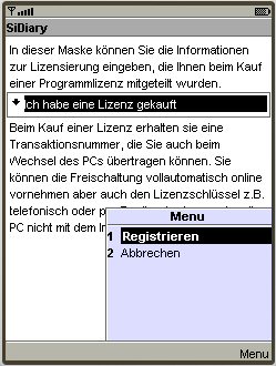 SiDIary Java-Handy mit Transaktionsnr. freischalten