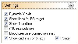 Dynamic Y-axis (for the level of the blood glucose values): SiDiary