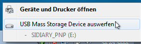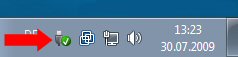 Beenden Sie das Programm. Klicken Sie dann doppelt mit der linken Maustaste auf das Symbol für 'Hardware sicher entfernen' im Bereich neben der Uhr rechts unten: